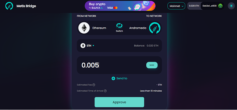 Step 5: Enter the amount you want to bridge to the Metis network.