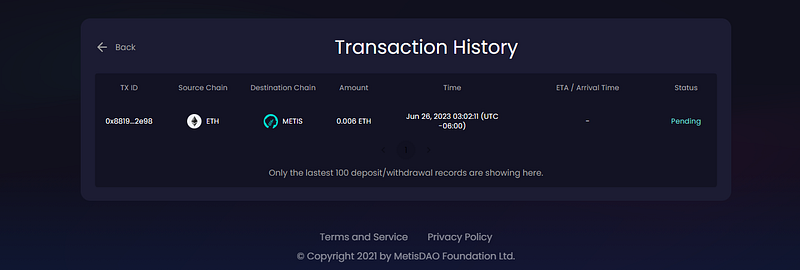 If this is the first time you have bridged this token from Ethereum to Metis, you will need to approve usage of ETH in this transaction before initiating the bridging transaction. Click the βApproveβ button at the bottom of the terminal to approve the usage of ETH in this transaction.